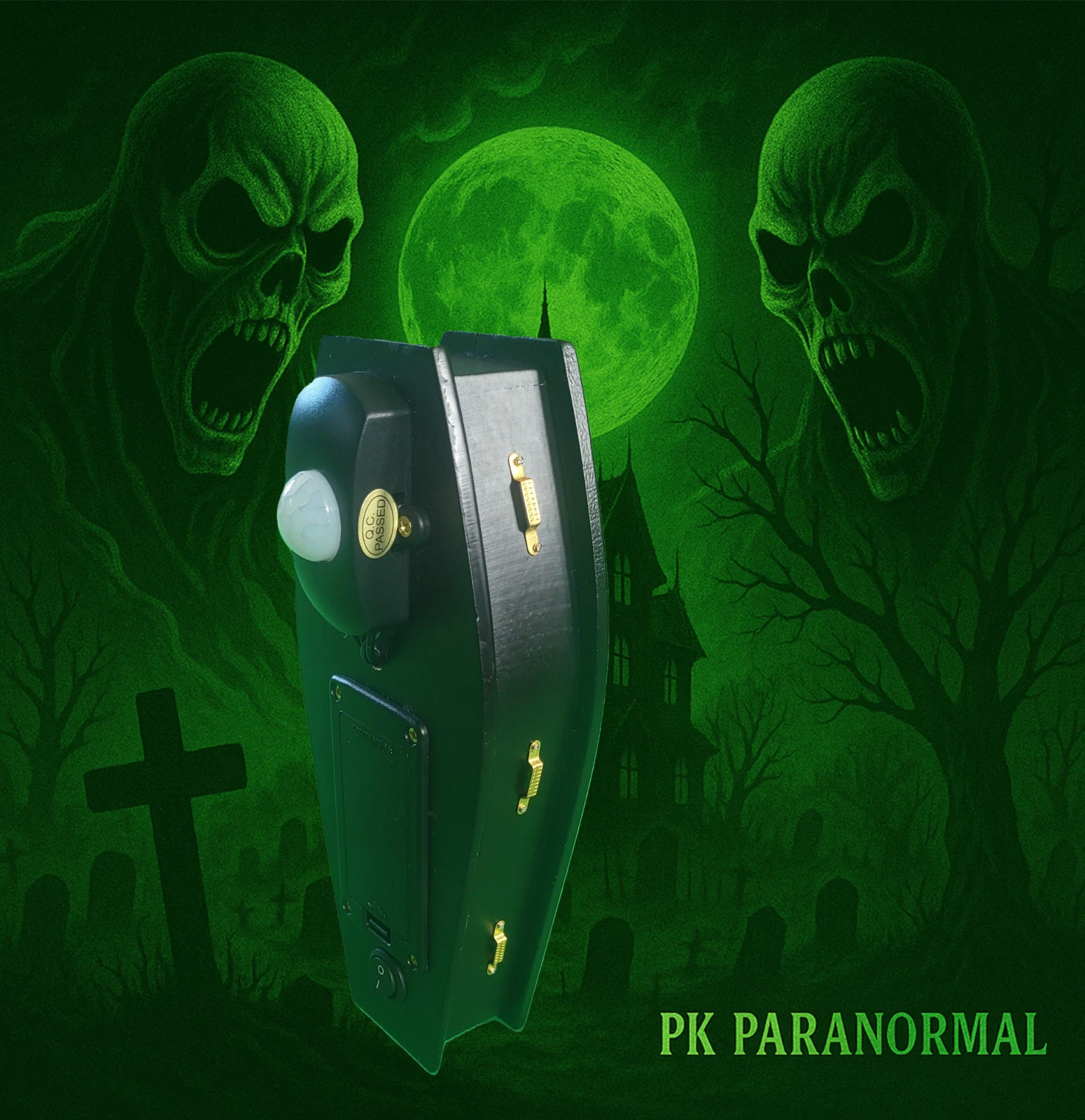 Introducing the newest addition to our ghost hunting lineup: the Belt-Driven I.R. Motion-Sensored Coffin Music Box. Designed in the same upright coffin style as our original, this upgraded version delivers a creepier tune, a spinning mechanical handle, and unmistakable presence—just like the ones seen on popular paranormal investigation shows. Key Features: ⚰️ Upright Coffin Design:…