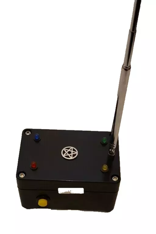 Although we don’t use the original brand name, this device performs just like it—emitting its own electromagnetic field and alerting you to nearby spirit activity through sound and light. Disturbances in the field trigger an audible alarm and a colour-shifting LED response that intensifies as energy gets closer.